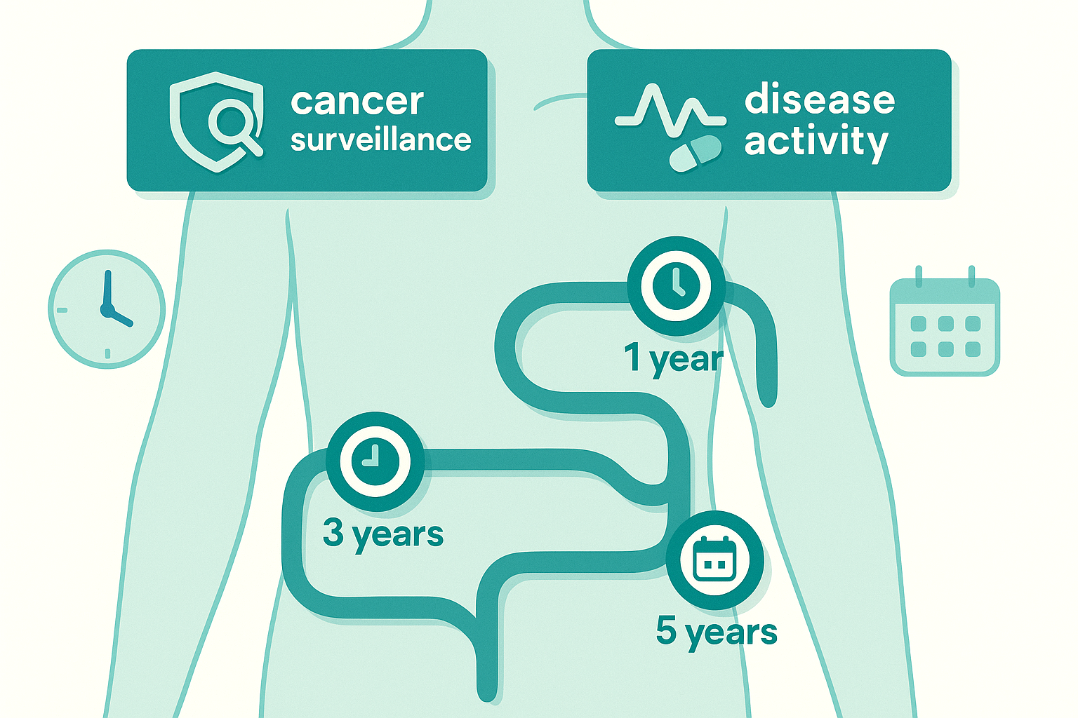• Soon after starting a biologic or small molecule, some clinicians will re-scope within 6–18 months to see if you’ve hit endoscopic or histologic remission.